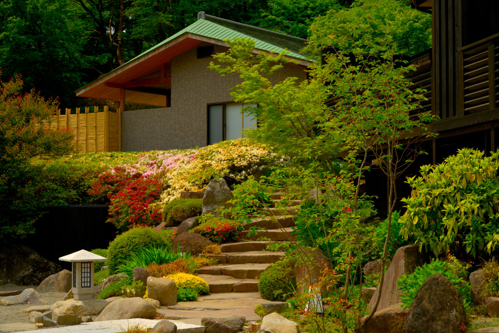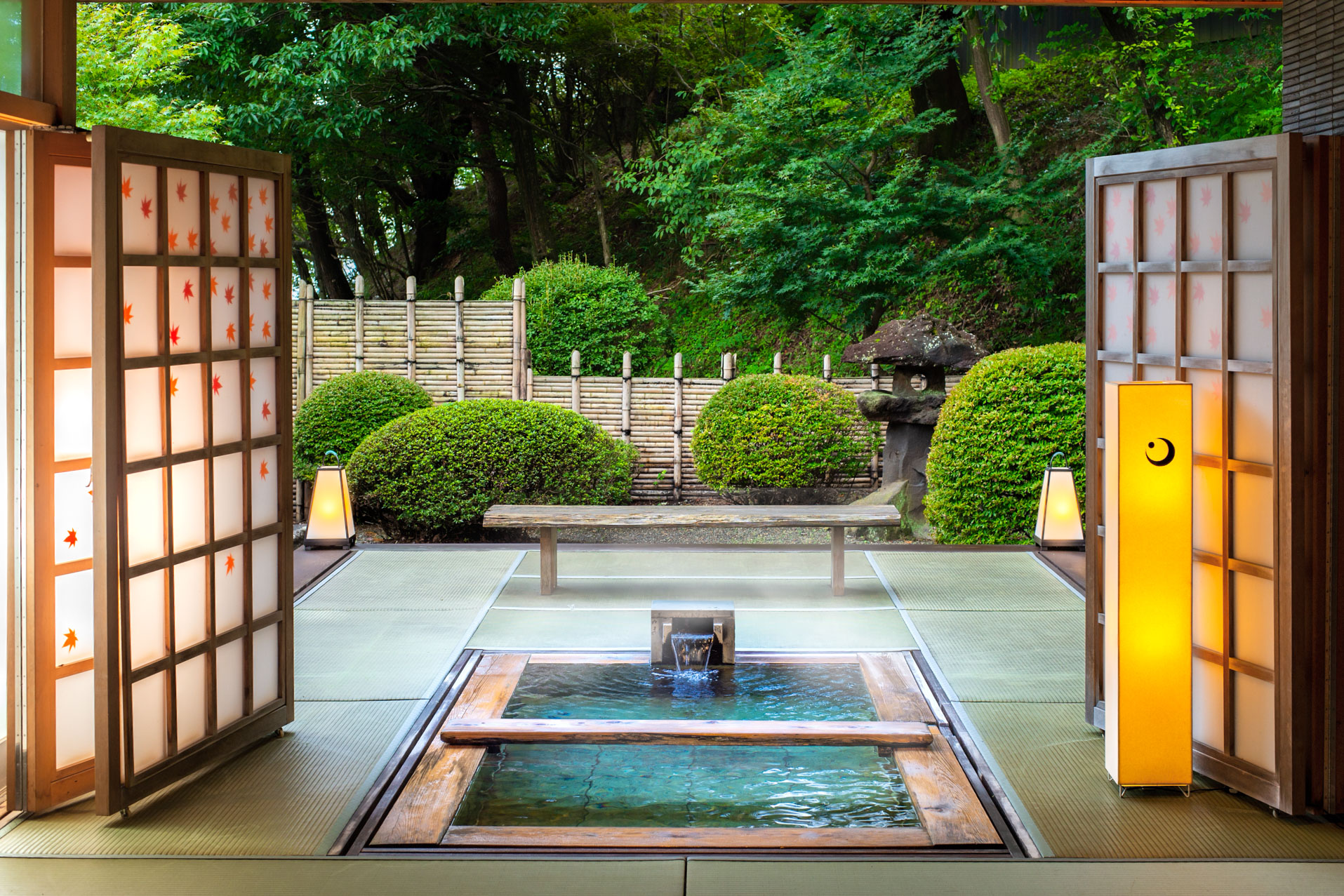 和室から露天風呂・専用の庭園まで開放的に望めます。